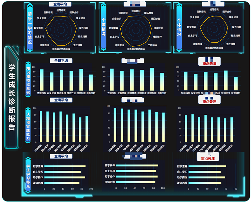构建开放型智慧教育平台,通过AI教学资源推动优质教育资源跨区域流动。牵头完成机动车检测技术员岗位知识图谱和技能图谱构建,为其他院校提供可参考的数字化转型方案。