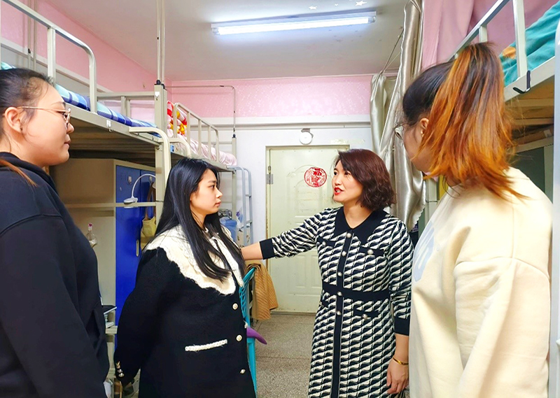 近期,受甲型流感病毒影响,个别学生有生病请假的现象。兼职班主任田野老师了解这一情况后,会同班长赵竟宏、学委袁思走访慰问了20级会计8班学生寝室。