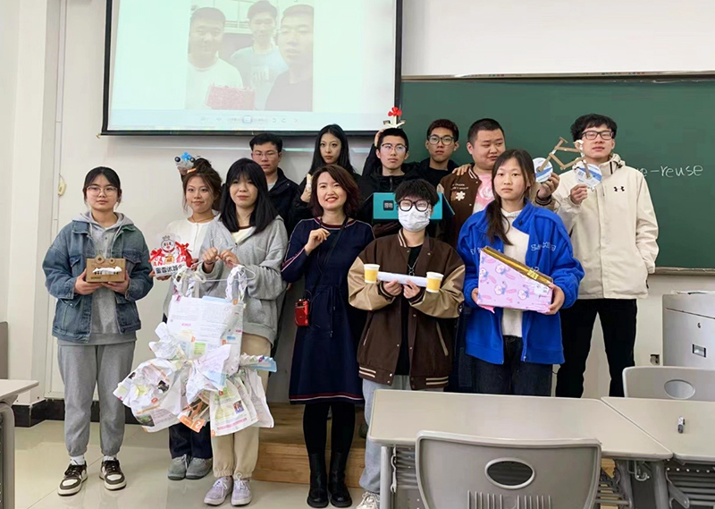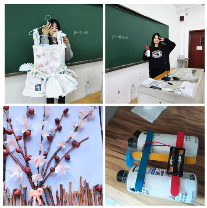 同学们展示了自己的“小创造”,这些作品是创造性思维和创造技法的“结合体”,同学们将课堂所学理论知识运用到实践中,将废旧物品充分利用。他们在动脑动手的同时,还提升了节俭、节能、环保等意识。