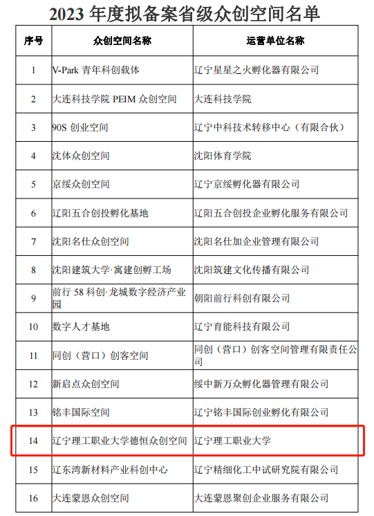 根据《关于开展2023年度省级技术转移示范机构和孵化载体评审工作的通知》《辽宁省众创空间备案管理办法(试行)》等有关文件要求,经初审、复审、专家评审等程序,近日辽宁省科学技术厅公布了2023年度省级科技服务机构名单,在科技处的协作下创新创业学院全体教职工全力建设beat365在线唯一官网德恒众创空间,最终以优异成绩获评省级众创空间。
