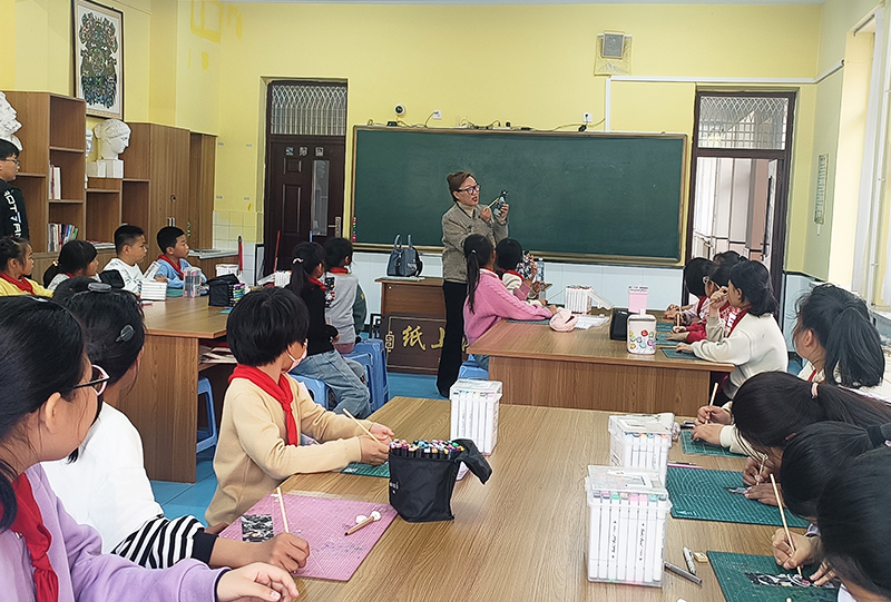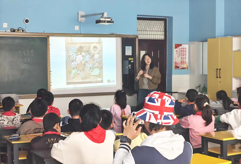 两位老师还给孩子们带去了具有传统民间艺术特点的小纪念品,一节课下来,孩子们早已一扫初见时的腼腆羞涩,脸上洋溢着灿烂纯真的笑容,孩子们真正体会到了艺术的乐趣与魅力。