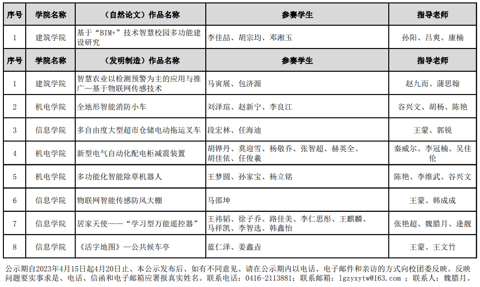 关于拟推荐参加第十六届“挑战杯”辽宁省大学生课外学术科技作品竞赛项目公示