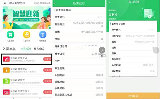 登录智慧迎新APP 在入学待办中 点击“预报到新生登记”—> 填写个人信息 —> 点击“提交”,最后会进入审核中状态。