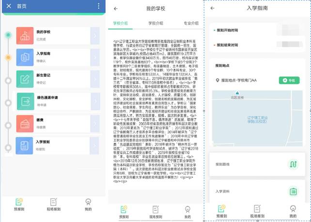 上述操作完成后会看到迎新流程,首先可以点击“我的学校”及“入学指南”查看学校简介及入学指南。