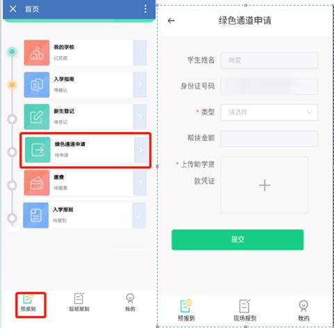 登录智慧迎新系统 —> 点击“绿色通道” —>上传凭证—> 点击“提交”
