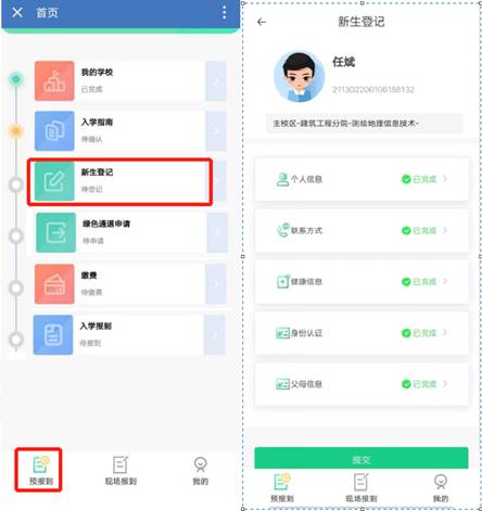 登录智慧迎新系统在预报到中 点击“新生登记”—> 填写个人信息 —> 点击“提交”即可。
