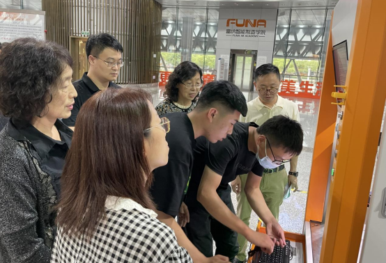 苏州富纳艾尔科技有限公司董事长吴加富先生、智能制造学院院长张波女士现场考查学生工业视觉编程操作过程