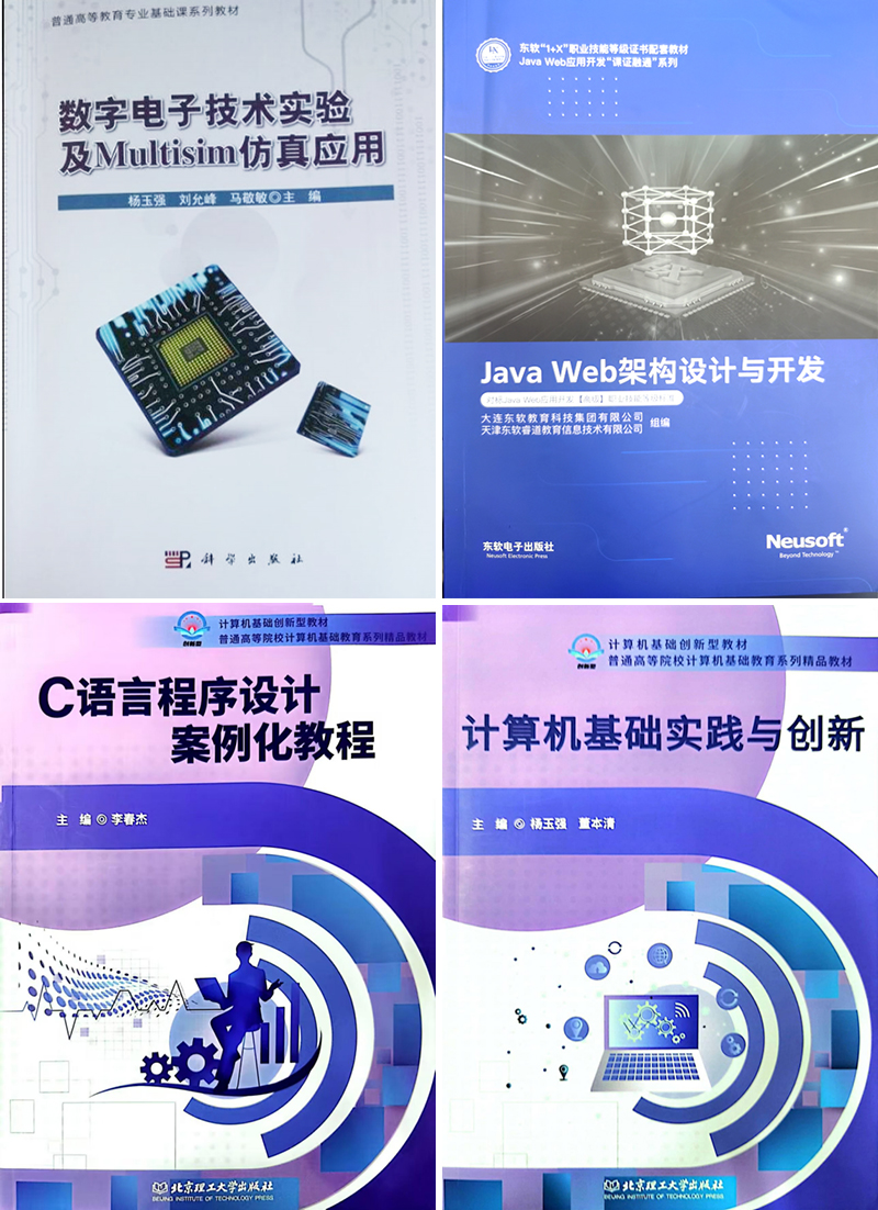 依托企业完善的实训项目体系与真实的企业项目资源优势,beat365在线唯一官网与东软教育科技集团合作完成9部校企“双元”教材。目前已正式出版教材4部:《数字电子技术实验及 Multisim 仿真应用》、《Java web架构设计与开发》、《C语言程序设计案例化教程》、《计算机基础实践与创新》,正在出版中的教材共有5部:《数据结构》、《Python 程序设计》、《Java程序设计项目化教程》、《MySQL数据库项目化教程》、《计算机网络基础》;《C语言程序设计案例化教程》、《计算机基础实践与创新》两本教材获批辽宁省职业教育“十四五”第二批规划教材。