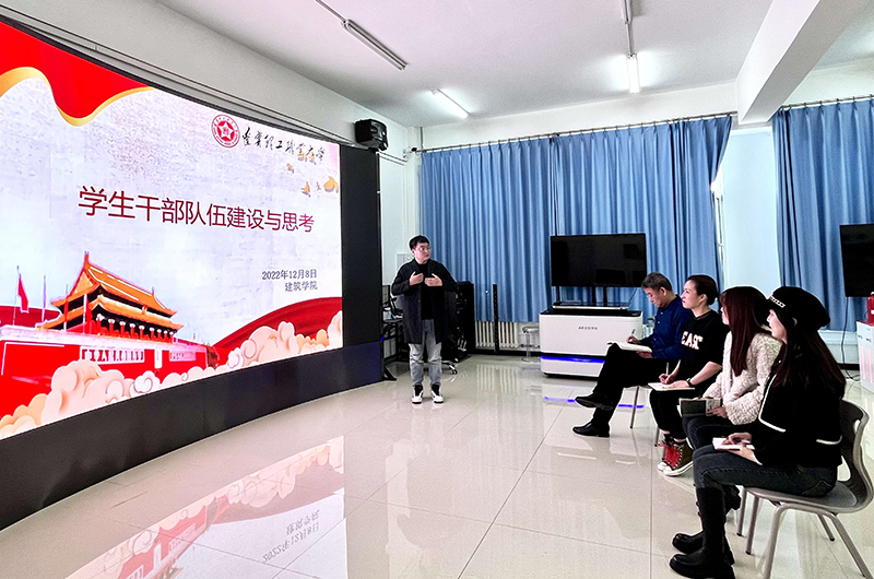 为切实加强建筑学院学生干部队伍建设,进一步提升辅导员对于学生干部队伍建设的理论水平、职业能力和专业素养,指导学生干部坚定理想信念、涵养优良作风、提高工作能力,建筑学院于12月8日举办辅导员对“学生干部队伍建设与思考”培训大会。此次培训会由团总支书记温涛主讲,主管学生工作副院长黎婧及建筑学院全体辅导员参会。