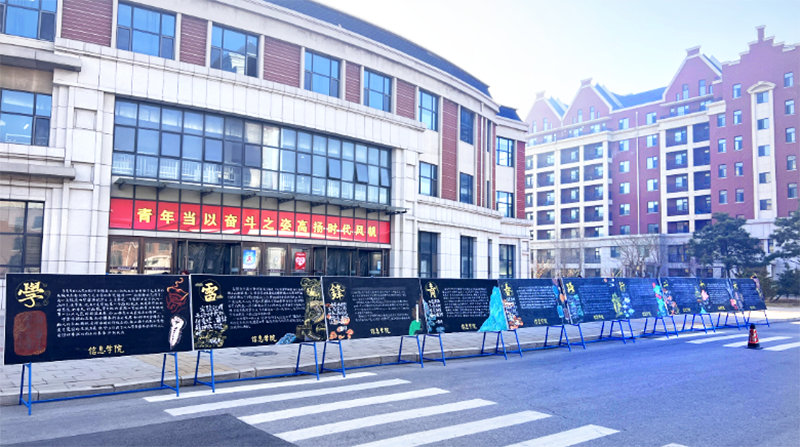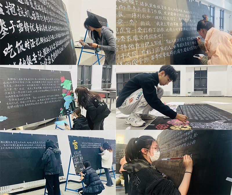 学院全体师生饱含深情,历经2天,精心手绘制作10块板报,既表达对雷锋同志的怀念、对雷锋精神的敬仰和学雷锋做雷锋的决心,在全校营造浓厚的学雷锋氛围;同时,也是践行美育教育,通过边学习边动手,来认识美、发现美、践行美。