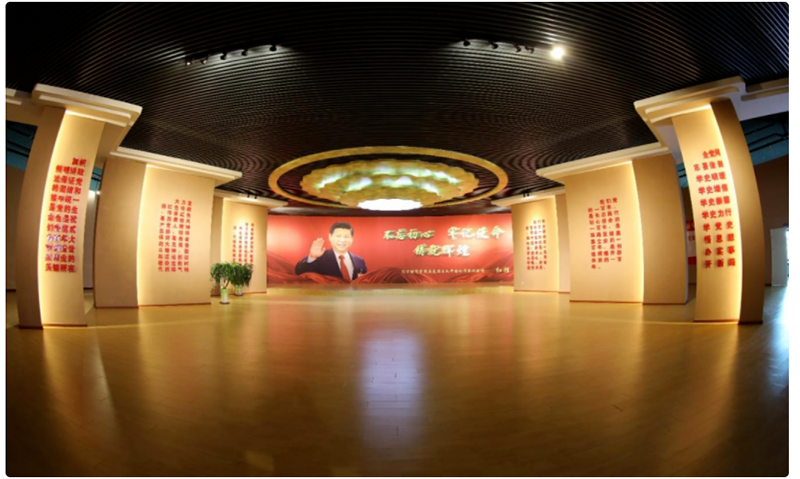 “红馆”是一个集平面展示、立体展示和科技展示于一体的大型现代综合性红色文化展馆。以贯彻落实中共中央关于“红色基因代代相传”重要思想为脉络,以“不忘初心 牢记使命 铸就辉煌”为主题,以中国共产党走过的革命、建设、改革三个非凡历史阶段为主线,设置“不忘初心”“牢记使命”“铸就辉煌”三大板块。在35万平方米的红馆内,全体党员干部集体参观了“党史”“英模人物事迹”“祖国辉煌成就”三个展馆。整个展馆,以习近平新时代中国特色社会主义思想为指导,全景展示了中国共产党带领中国人民开天辟地、改天换地、自强不息、创造伟业的风雨征程。