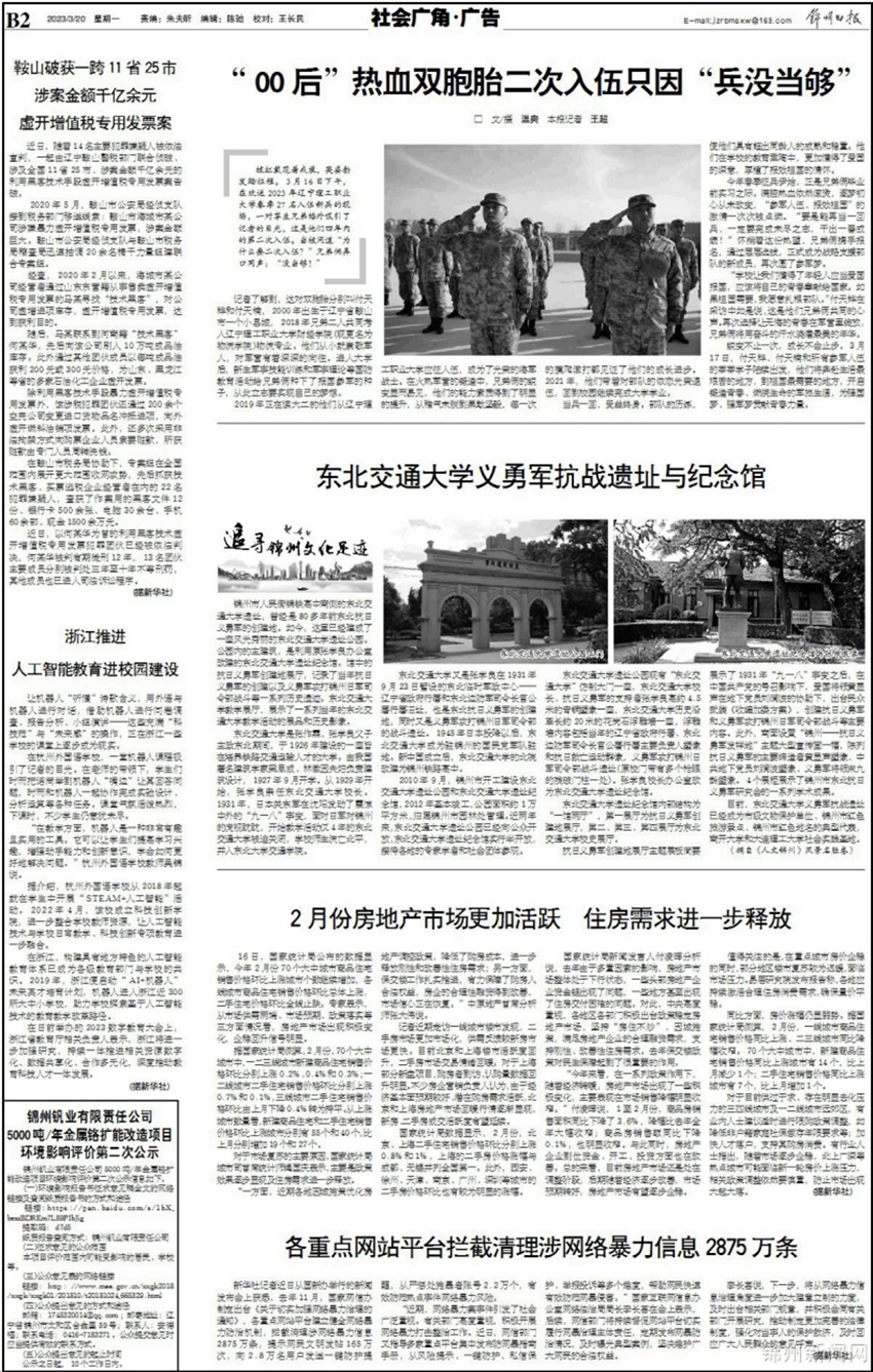 近日,由党委宣传部撰写的《携笔从戎,再圆参军梦》的故事在社会上引起强烈的反响。学习强国、网易新闻、锦州广播电台、锦州日报、锦州晚报等媒体报道此事。