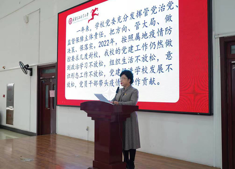 会上,党委副书记蔡红武代表学校党委作2022年度党建工作报告。《报告》全面总结回顾了2022年学校党建工作情况,把握新时代党的建设总要求,总结了2022年度学校党建工作取得的成绩。学校党委充分发挥管党治党、监督保障主体责任,把方向、管大局、做决策、保落实。按照属地疫情防控要求,在完成疫情防控各项艰巨任务的同时,beat365的党建工作仍然做到政治学习不放松,组织生活不放松,意识形态工作不放松,党建促进学校发展不放松,党员干部带头为疫情防控作贡献。同时,查找了党建工作中仍然存在着薄弱环节和难点问题。