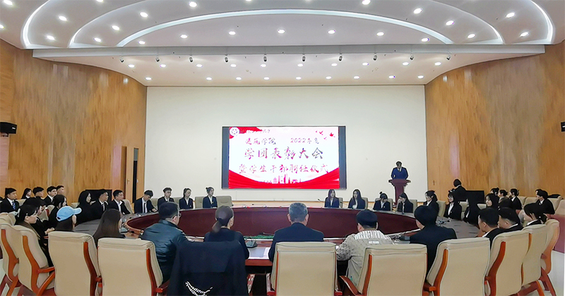 表彰会上学院对2022-2023学年各组织学生干部进行授牌聘任,温涛老师发布了《学生干部自律公约》倡议书,强调学生干部要认真履职,自觉带头做好各项工作,合理协调时间,做到工作、学习双赢。