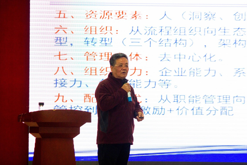 金教授以两个名人名言为切入点,引出了本场讲座的第一个部分——百年管理的产生与发展,接着着重介绍了四次工业革命与管理革命的特点,并对比了四次管理革命的核心主题。而后,带领大家梳理了四代管理学体系,指出了第四代管理学面临的挑战。关于对管理学理论与实践的探讨,金教授提倡做“有实践的理论,有理论的实践。一是要坚持党的思想路线,二是要做到知行合一。