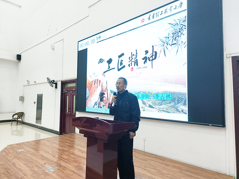 为贯彻落实习近平总书记关于大力弘扬“劳模精神、劳动精神、工匠精神、创新精神”重要讲话的精神,进一步增强师生对学校的认同感和归属感,4月20日晚,汽车学院在北校区主楼阶梯教室举办了“工匠精神”系列讲座。本次主讲人汽车学院常务副院长、副教授、“李占林大师工作室”负责人李占林。李占林老师2022年被评选为“锦州工匠”,曾多次荣获锦州市科技攻关一等奖、校“优秀教师”和校“先进工作者”荣誉称号,多次指导学生参加辽宁省汽车维修技能大赛并获奖,目前拥有国家级专利两项,主讲发动机电控技术、汽车舒适和安全系统、汽车电路分析等课程。
