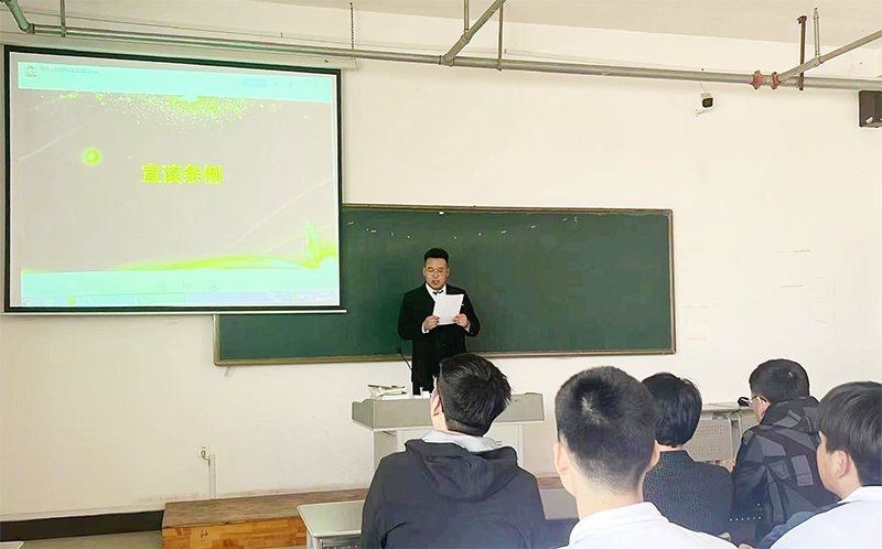 学生会卫生健康委员会部长薄宇豪在启动仪式上宣读汽车学院《寝室文明公约》主要内容