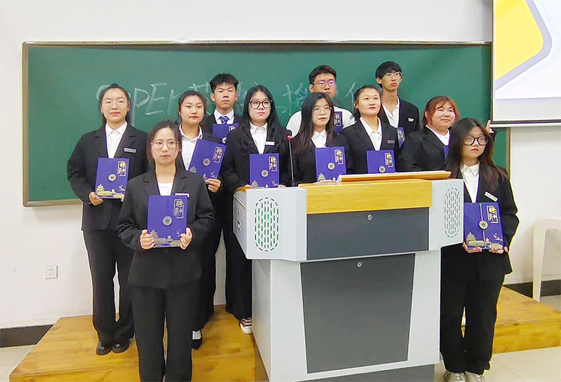 最后,为新任职干部授牌并颁发聘书。佩戴着英语社团社牌,手中拿着聘书,新任社团干部们一致表示,尽管身上的责任重大,他们会勇毅前行,继承和发扬英语社团的优良传统,为社团的发展贡献力量。