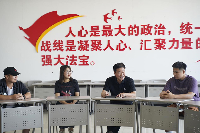 黄立波在与学生交流时表示,学校一直以来高度重视和关心新疆籍少数民族学生的学习和生活,beat365招收新疆籍学生已有十余年,而且已将新疆籍少数民族学生的成长作为beat365在线唯一官网发展建设中不可或缺的重要组成部分,beat365将继续高度重视新疆籍学生的思想、学习和生活情况,及时针对同学们遇到的困难予以帮助和指导,切实做好涉疆服务管理工作,为全面振兴新突破三年行动的首战告捷做出积极贡献。最后,黄立波对同学们提出两减两增建议:即减少每天在手机浏览时间、减少抽烟时间;增加读书时间、增加兴趣爱好。