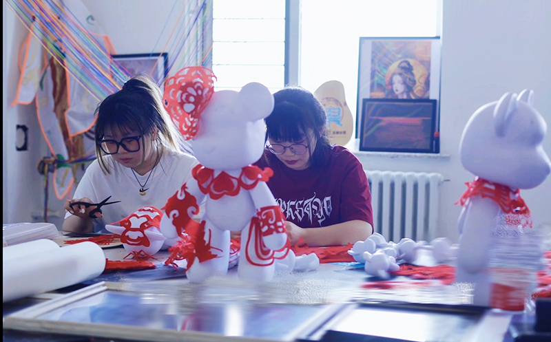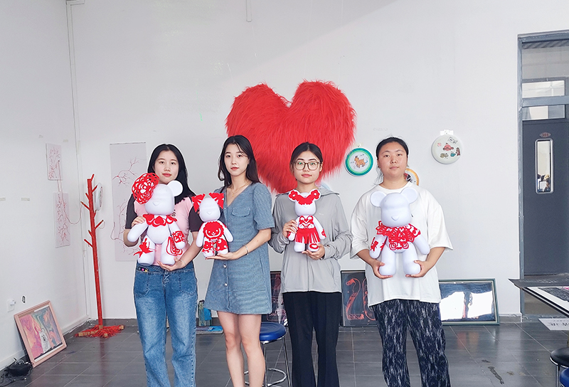 艺术为表,精神为里。为弘扬中华优秀传统文化,2023年6月29日开始,由学校青禾·非遗艺术坊与信息学院师生共同创作的6米剪纸长卷和潮流艺术剪纸熊系列作品在软件楼302青禾·非遗艺术坊展出。