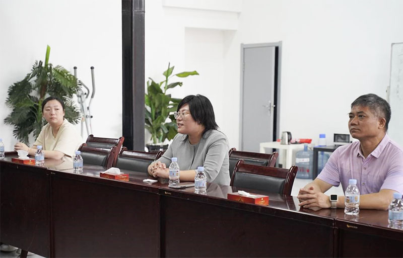 参观结束后,双方来到会议室进行座谈交流,道光廿五集团董事长张慧介绍了集团的发展历程、企业文化、品牌内涵、今后发展方向。希望学校的老师有时间走进企业,出谋划策,助推企业发展。