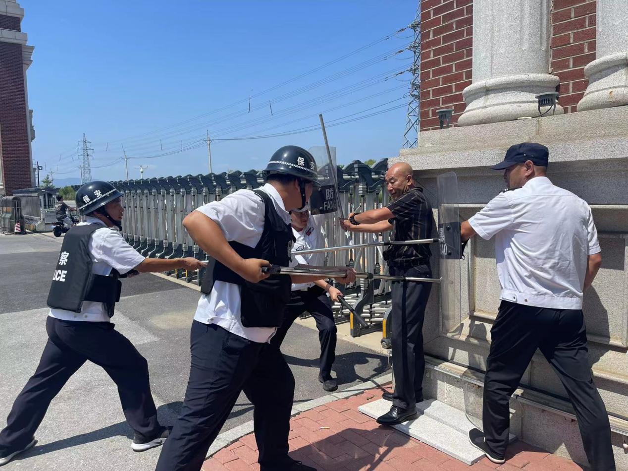 为确保暑假期间校园的安全稳定,保卫处认真落实假期工作要求,全体人员严格落实值班制度,坚守岗位,履职尽责。突出工作重点:加强门卫值班值守,加强校园巡逻巡查。值班人员24小时在岗在位,对外来人员、车辆进行细致的核实、检查、登记。特别是针对提前来校参观的新生及家属,既做到执情服务,又要求符合程序,并细心答复相关问题的咨询,发挥桥梁作用,展示窗口形象。同时加强校门的安全防范,做到遇有情况,快速反应,迅即出动,高效处置。8月9日,组织保卫处值班人员进行了校门防暴应急处突演练,全体值班人员态度端正、不惧炎热、着装整齐。依据预案,针对不同情况,反复进行演练,做到方案流程清、担负任务清、处置方法清、协同配合清,增强了防范意识,提升了处突能力,达到了演练效果。