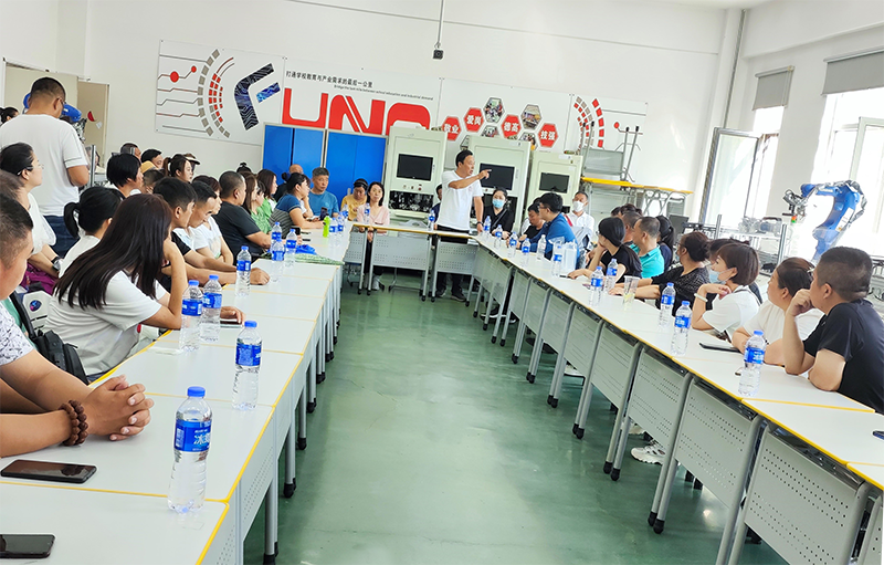 机电学院考虑到为新生家长们答疑解惑,学院领导于当天下午1点30在机电楼103召开新生家长见面会。机电学院院长、老师、辅导员均参加本次活动,会上张波院长介绍了学院的师资力量、教研设备、管理方式等情况。为各位家长们解疑答惑,会议结束后还带领新生家长们,参观机电学院的实训室,让家长进一步了解机电学院。