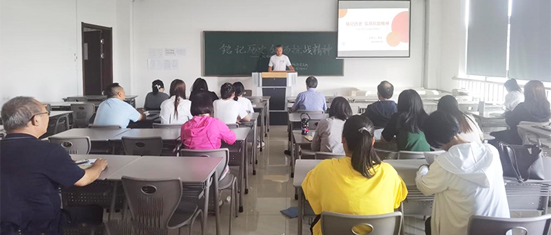 9月22日下午,基础部在教学楼805教室召开了纪念“抗战胜利78周年”主题会议。会议上,杨志书记主讲题为《铭记历史 弘扬抗战精神》的党课,基础部全体教师参加,校级领导孟庆男副校长出席会议并发言。