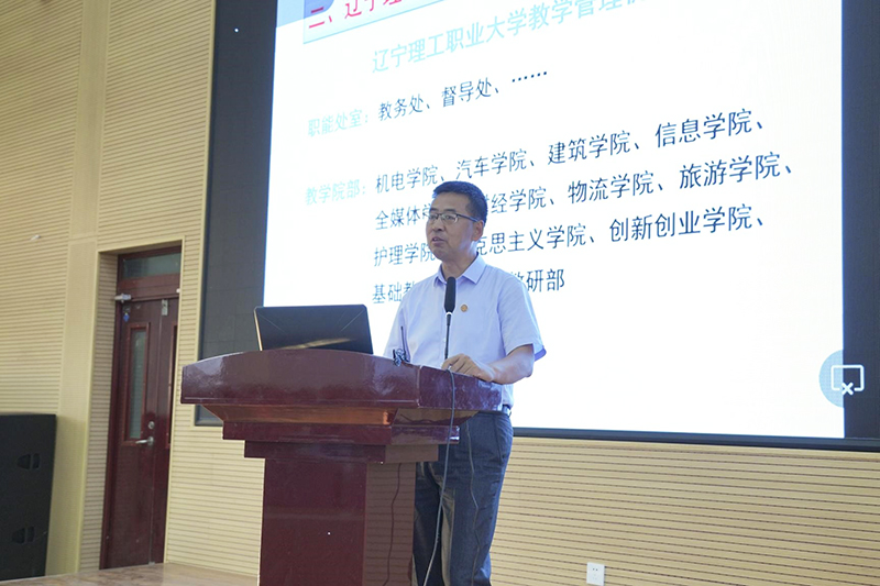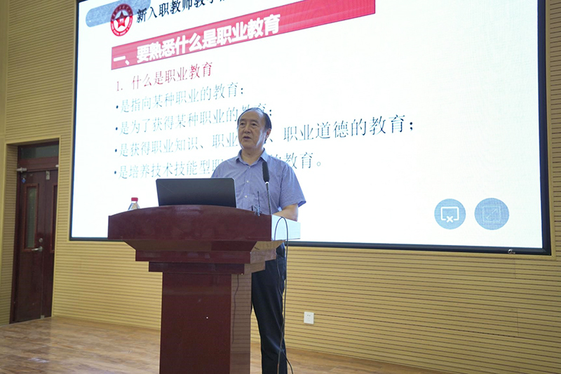 副校长、教师发展中心主任孟庆男帮助新入职教职工熟悉什么是职业教育,如何把握完善的教学规范,以及如何形成如备课、教态、语言、板书和课堂纪律方面的教学技能。