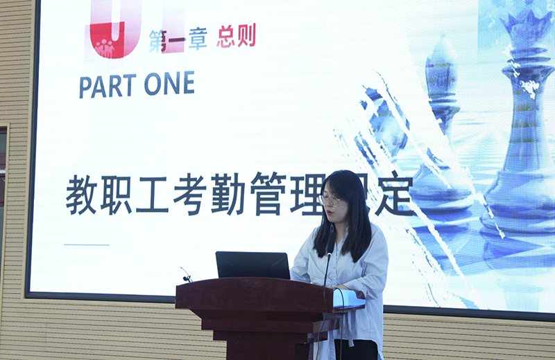 劳资副科长崔光旭对教职工个人待遇,学校现行的授课教师课时标准,以及休假制度进行了详细的介绍。
