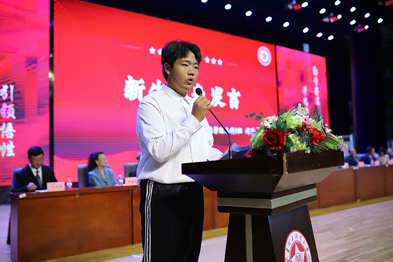 2023级物流学院何洋昊朋同学作为新生代表发言,他代表全体新生对学校细致周到的安排、老师们无微不至的关怀、学哥学姐们热情的指引和帮助表达真诚的感谢,并表示在大学里坚定不移听党话、跟党走,怀抱梦想、脚踏实地,敢想敢为、善作善成,立志做有理想、敢担当、能吃苦、肯奋斗的新时代好青年。