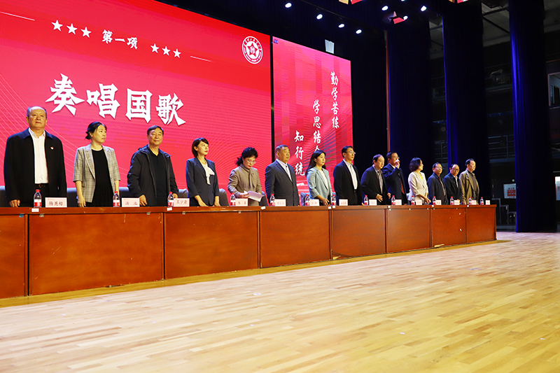 全场师生起立奏唱国歌,以热情昂扬的姿态,拉开了开学典礼的序幕。