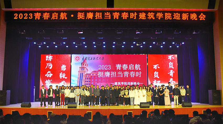 10月12日17:30,建筑学院2023级迎新晚会如期而至,晚会活动由内容丰富、形式多样。出席本次晚会的领导与老师有建筑学院院长穆柏春、学生处处长朱磊、建筑学院学生工作副院长黎婧、党委宣传部融媒体中心主任温爽、公寓管理中心主任何海龙、团总支书记温涛以及全体辅导员老师。