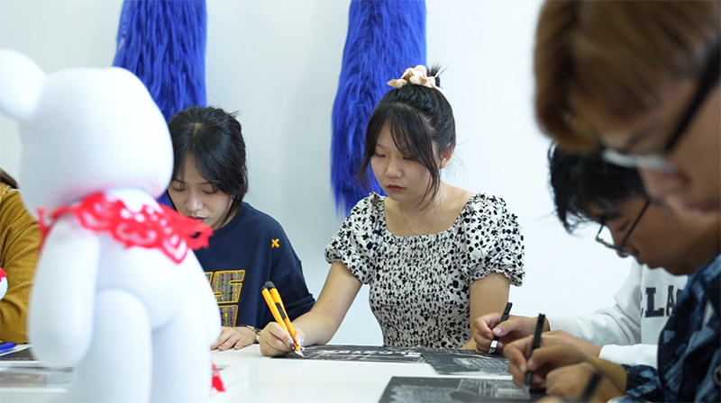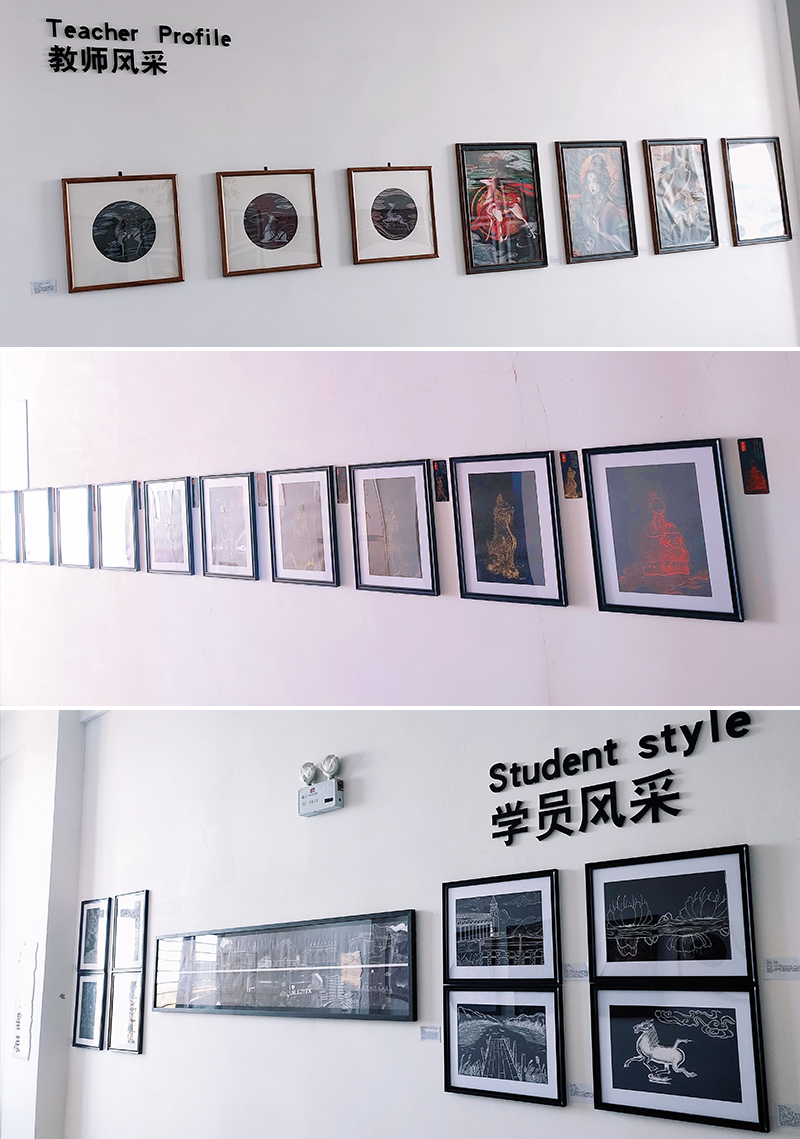 创作技法采用纸上“刀绘”这一全新的艺术形式,用刀片在特质“刀绘”专用纸上绘制图画。因学生们下刀力道、角度、方向以及刀的位置不同,会展现出远近虚实、浓淡曲直等不同形态。纸上刀绘最大的特点就是细腻,刀尖刻画的线条如发丝般细;难点是避错,因为一旦留痕既不能用其他颜色覆盖,也不能改变线条走向,只能一次成型且刀绘小部分细节耗时较久。刀绘展示艺术与文化的魅力,作品蕴含师生们美好的祝福,表现手法是一种融合与创新,使学生们能沉淀内心,提升自身的传统文化素养,及非遗艺术的实践。