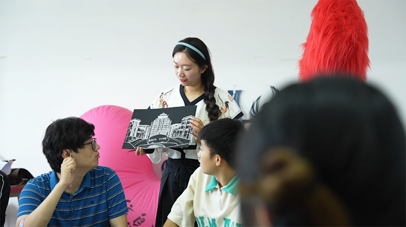 指导老师李桐老师带领学生们用三个月时间进行了以纸上“刀绘”全新艺术形式的长卷创作,学生们从构思到设计草图再到实践,以“刀”代笔,匠心传承。设计元素将学校南、北校区的建筑、云纹、山石、花卉、海浪等历史文化元素符号,赋予新的视觉美感。参与本次创作的学生有:石玥、张梦圆、张嘉桐、王书宇、吕湘婷、顾宏宇、朱慧敏、王树藩、张咏琪、曲禹蒙、夏薇、王璐、孙歆宇、王瑞、李雅琦、马丽丽、孙千茹、许潇丹、韩旻晔、马婧琳、王佳鑫、赵婉彤、隋一新、叶子俊、苑思淇、丁元伊、胡佳琪、徐丞皓、申芷若。