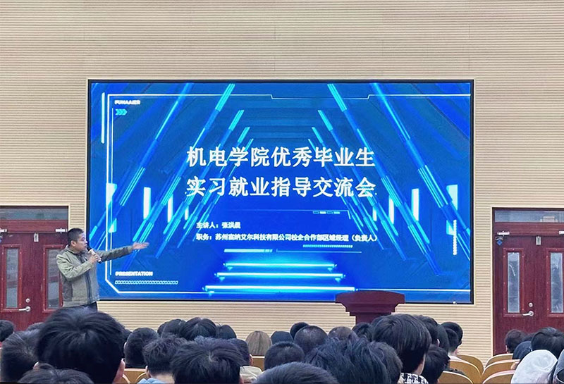 2023年10月19日晚,机电学院于阶梯教室开展了实习就业指导交流会,主讲人为2019级优秀毕业生张洪晨,为2020-2021学年beat365在线唯一官网学生会主席,目前就业于苏州富纳艾尔科技有限公司,现担任校企合作部区域经理(负责人)。参加本次讲座为2021级机械设计制造及自动化专业全体同学。