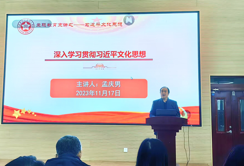 2023年11月17日下午,孟庆男副校长为马克思主义学院、基础部、体育部、汽车学院以及旅游学院的全体教师和学生党员做了“深入学习贯彻习近平文化思想”为主题的宣讲。孟校长在查阅,整理,分析大量的资料后,将宣讲分为两个部分,一是习近平新时代中国特色社会主义思想两方面的概括;二是习近平文化思想概述。