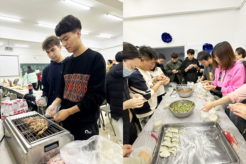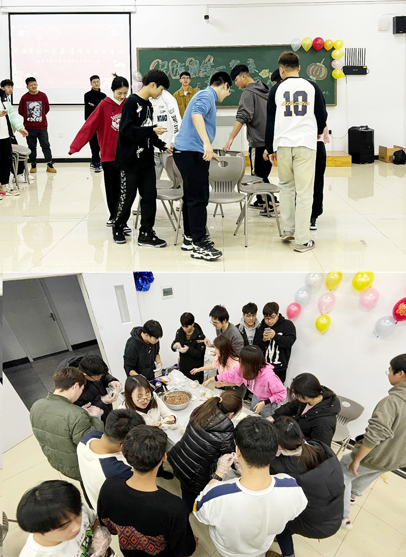 师生齐聚一堂,活动开始,温爽老师表达了对同学们的关心,欢笑间拉开了本次晚会的帷幕。为让少数民族学生以独特的形式喜迎新年,本次活动将北方习俗包饺子与锦州非物质文化遗产烧烤相结合,为同学们带来了满满的年味道。在活动现场,大家摆好长桌,分工明确,围在一起“大显身手”,笑语不断,大家用自己拿手的方法包着各种各样的饺子,切磋技巧,“烤串组”成员也忙得不亦乐乎,肉香味飘满整个会场。很快香喷喷的饺子和羊肉串便呈现在餐桌上,大家围在桌旁,津津有味的品尝起自己的劳动成果,共同分享劳动乐趣,其乐融融,热腾腾的饺子和羊肉串,承载的不仅是美味的享受,更是浓浓的情意。大家慢慢享用之后便开始一系列的趣味游戏,既有互动性的又有点竞争感的游戏将现场的氛围推向高潮。每位同学都积极参与上台展现自我,给大家带来乐趣的同时,也感受到了来自学院的温暖和关怀。