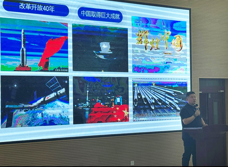 首先,中国远洋海运集团公司船舶政委巩楠以《出国之后更爱国》为题,结合自身随船和出国经历,进行了一场既生动又感动的国防教育讲座。巩政委从民生、教育、制度等多个层面,带大家客观的了解国外的生活,通过对比,让我们真切地体会到祖国快速发展带给我们的民族自豪感,也让我们更加坚定“四个自信”,要为实现中华民族的伟大复兴而不懈奋斗。