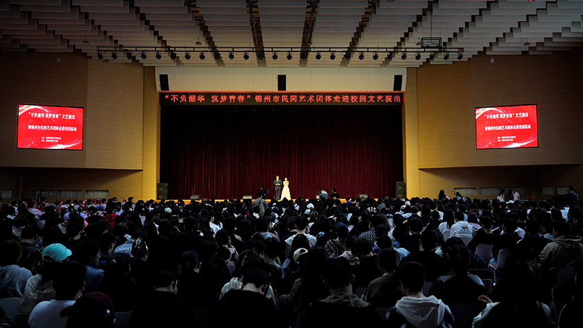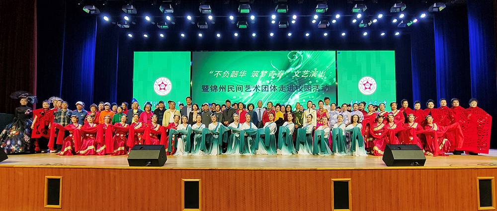 本次活动由锦州市八家民间艺术团体联袂表演,包含萨克斯合奏、舞蹈、模特秀、独唱、二重唱、京胡独奏等10个精彩节目,现场气氛热烈,掌声和欢呼声此起彼伏,让在场的师生陶醉其中。
