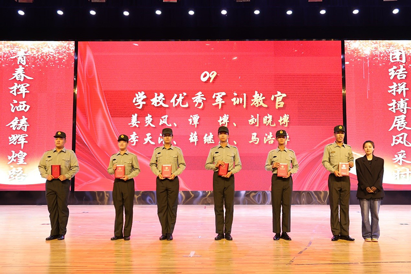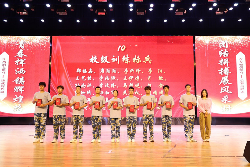 张波院长宣读了受表彰的军训期间内务评比优秀团队、学院军训总负责人、校级优秀教官以及校级训练标兵等荣誉的人员名单。并由张波院长、宋坤书记、刘嘉媛副院长、胡杨书记分别为获奖的团队及个人颁奖,18名连队代表为军训教官献花。