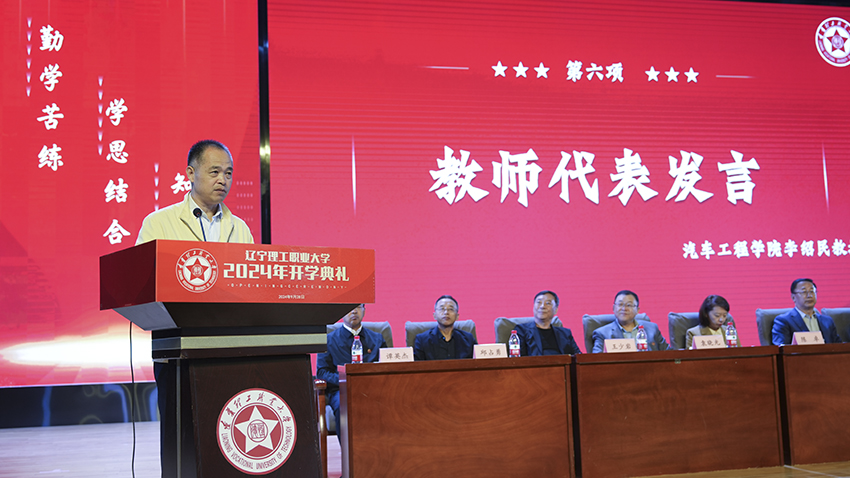 教师代表汽车工程学院专任教师李绍民寄语新生,他希望广大新生合理规划大学生活,全方位发展自己,度过充实、丰富、快乐、无悔的大学时光。