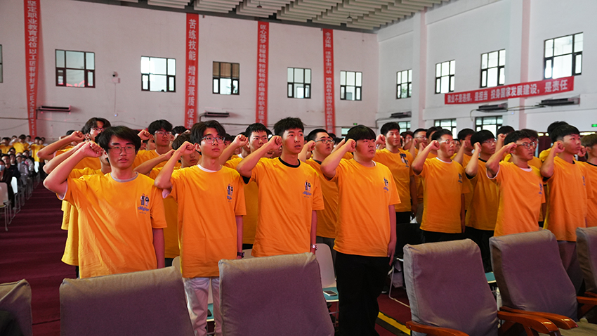 全体新生在智能制造学院自动化技术与应用1班吴鑫权带领下庄严宣誓。