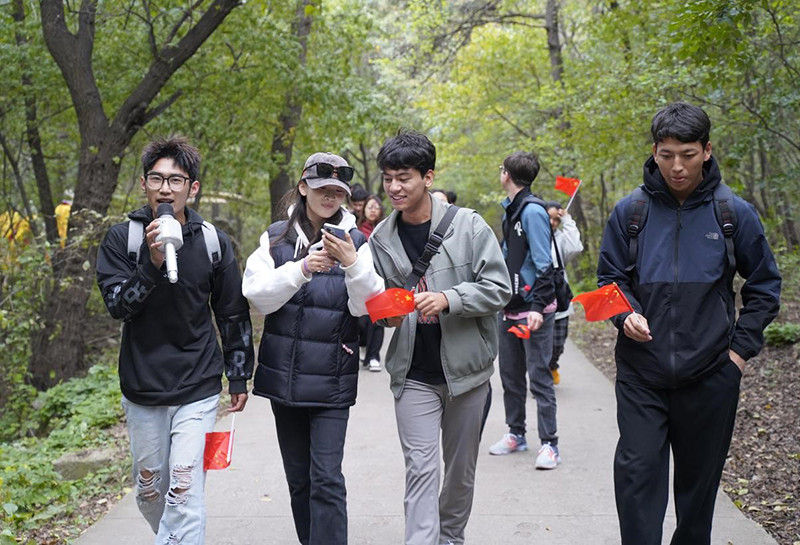 来自广西壮族24级的同学罗愿超感慨万分:在这国庆佳节,来到北普陀山,领略到大自然的壮丽景色同时感受到学校对我们的关怀。在这个团队,我认识了来自各个学院各个民族同学,深刻体会到民族团结一家亲的大家庭温暖。