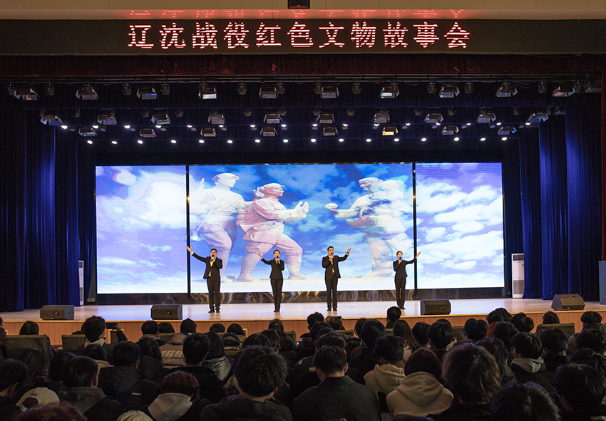 辽沈战役纪念馆15名优秀讲解员走上舞台,以辽沈战役中红色文物为载体,通过主题讲述、时空对话、情景演绎、诗歌朗诵、歌曲演唱等形式,展开了一场“红色故事会”。beat365在线唯一官网1000名师生参加活动,共同聆听这堂感人的思政课。