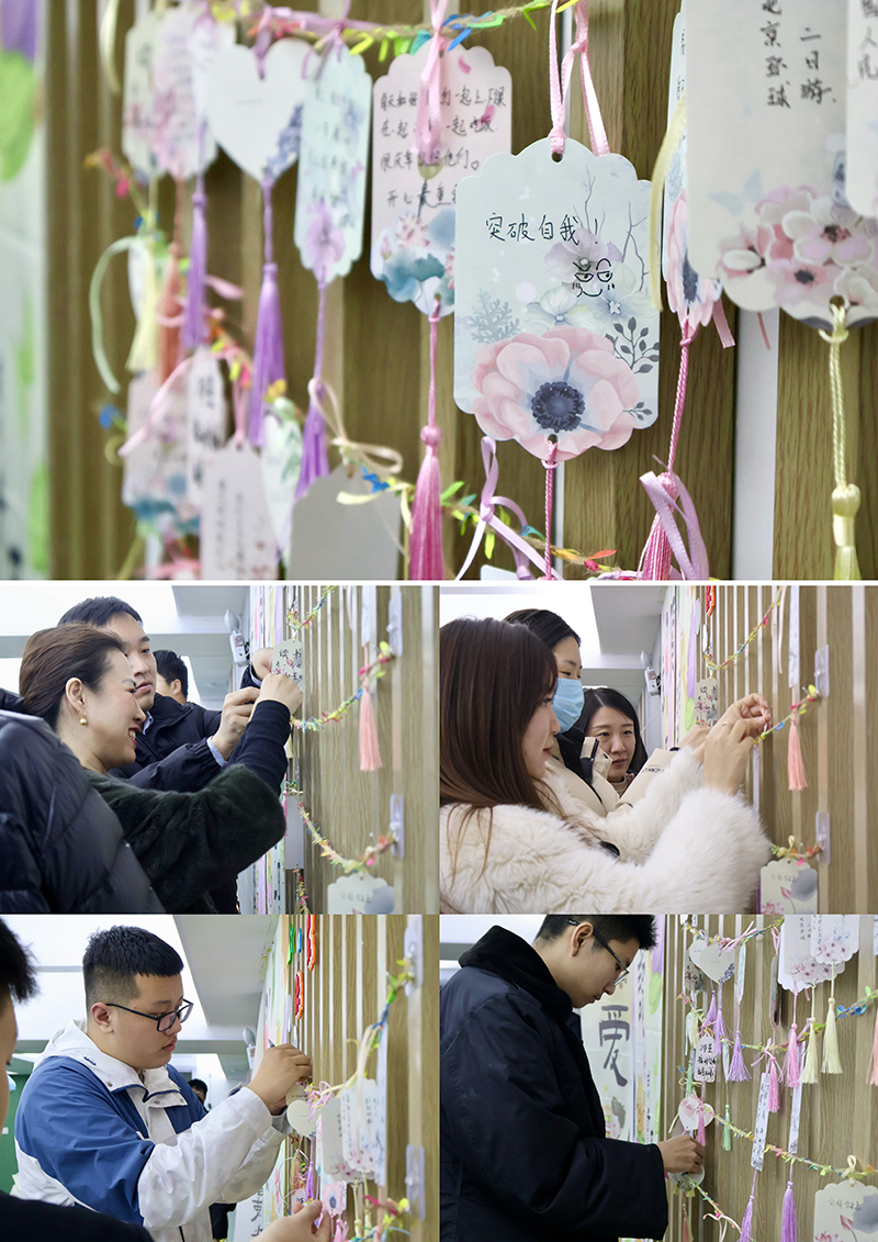 生活就好比一本书,书页中或许有污渍,或许有惊喜。现场设置“烦恼垃圾桶”和“快乐收集墙”两种箱子,同学们在定制卡片写下自己最近遇到的烦恼或困惑,并投入“烦恼垃圾桶”中。在这个环节,大家敞开心扉,将自己的烦恼记录下来,以心理疗愈方式发泄了内心的压力。“快乐收集墙”是一个承载着同学们祝福和快乐的地方,同学们将承载着快乐的书签挂在“快乐收集墙”上,将快乐与温馨的文字记为永恒,将快乐常挂心头。