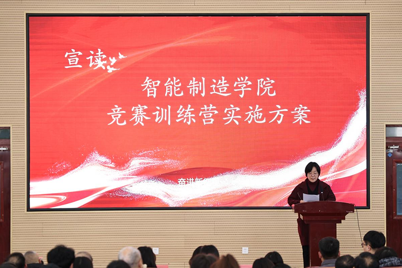 宋坤副院长宣读了《智能制造学院竞赛训练营实施方案》,方案中按竞赛类型成立四个训练营:机械制造专业“智造未来训练营”、自动化专业“智电先锋训练营”、工业机器人专业“智耀星途训练营”以及学院创新创业类竞赛的“双创之星训练营”。方案还规定了训练营成员的选拔、训练营活动内容、训练场地及训练机制、保障措施等内容。