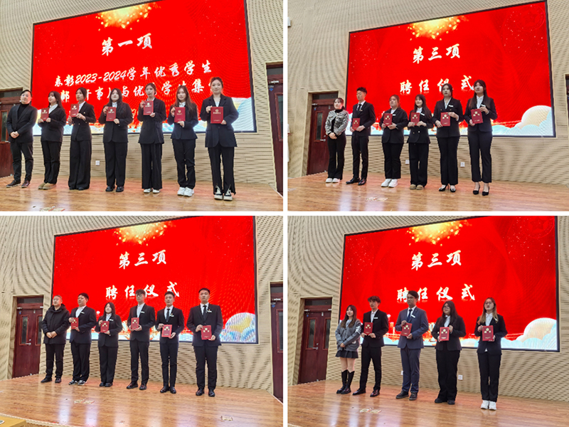 仪式上,学院对上一学年在学生工作中表现卓越的干部与干事进行了表彰,他们在组织活动、服务同学、促进校园文化建设等方面均发挥了模范带头作用,其辛勤付出与杰出贡献得到了师生们的广泛认可。随后,新一届学生干部依次走上舞台,郑重地接过聘任证书,正式开启他们在学生工作中的新篇章。