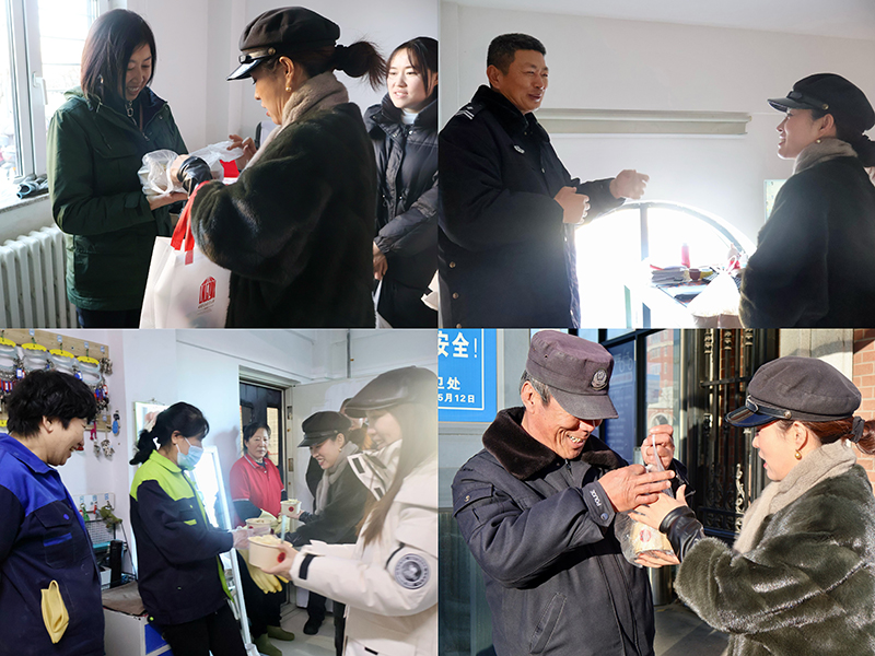 同时建筑工程学院党支部全体成员为学校保卫处老师及宿舍阿姨送去热气腾腾的饺子,代表了建筑工程学院师生对其的关爱和感谢,感谢保卫处老师们在寒风中对于岗位的无私坚守及门卫阿姨、保洁阿姨在学生公寓的爱岗敬业,他们才是beat365在线唯一官网的最美“守夜人”。