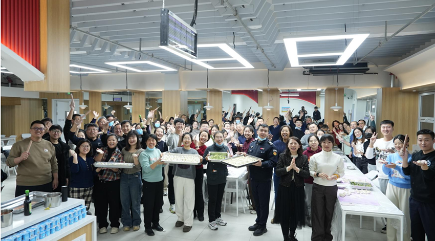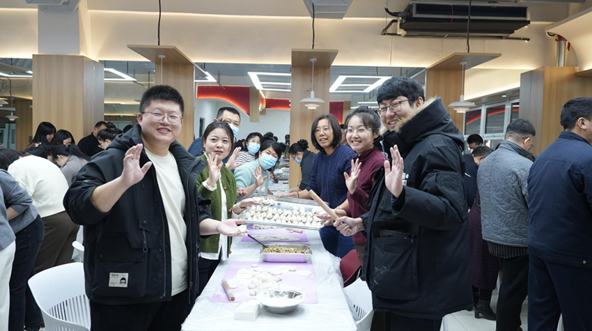 各分工会教职工积极踊跃参加包饺子活动,大家齐聚教工食堂,擀面皮,包饺子,摆盖帘屉联,分工合作,配合默契,教工们一边包饺子一边畅谈工作和生活,其乐融融,有的同志手法娴熟,有的同志巧思奇想,大家在双手灵动间,肉三鲜和素三鲜的元宝饺子、柳叶饺子、大肚饺子、花朵形饺子跃然于屉联盖帘上,每一个饺子都承载着大家的心意、巧思与创意。学校视频制作中心派出摄影摄像师,到现场记录这美好时刻。